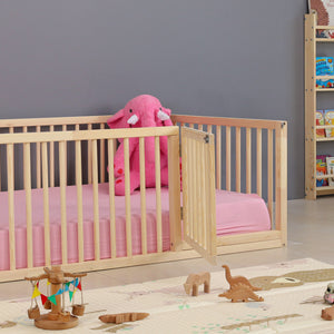 Lino - Montessori Playpen Floor Bed with Cylindrical Railings and Gate