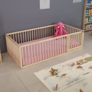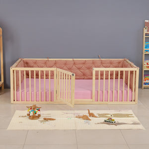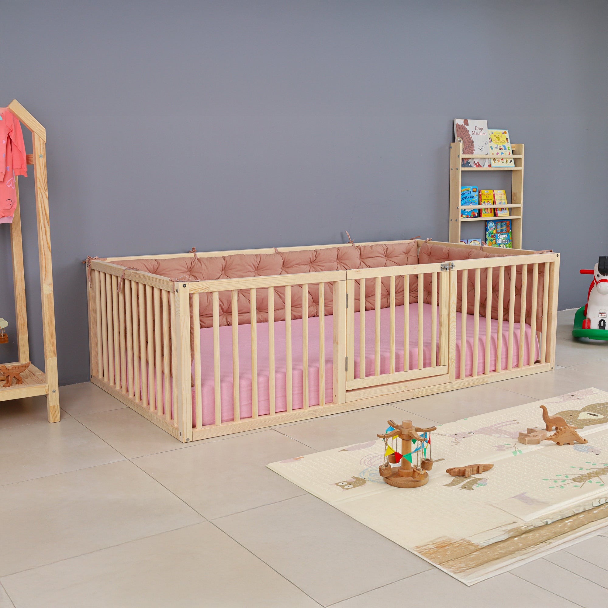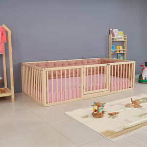 Fenrir - Montessori Playpen Floor Bed with Cylindrical Railings and Gate