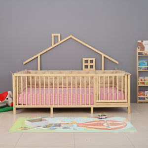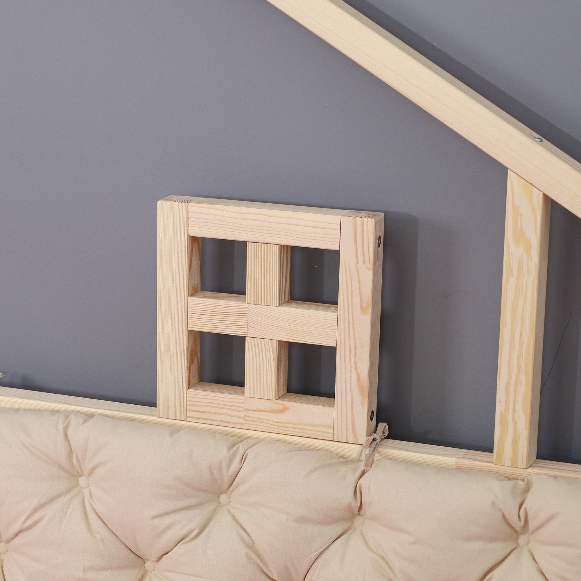 Elevate your child’s bedroom with the River Montessori playhouse low bed, featuring an open house-frame design and cylindrical railings for added safety. Crafted from sustainable solid wood, this floor-level bed encourages independent play and confident sleep while minimizing fall risk. The playhouse frame invites creative décor—drape fabrics or hang lights to inspire imaginative play. Twin size (mattress sold separately) blends seamlessly into modern children’s spaces and grows with your toddler.
