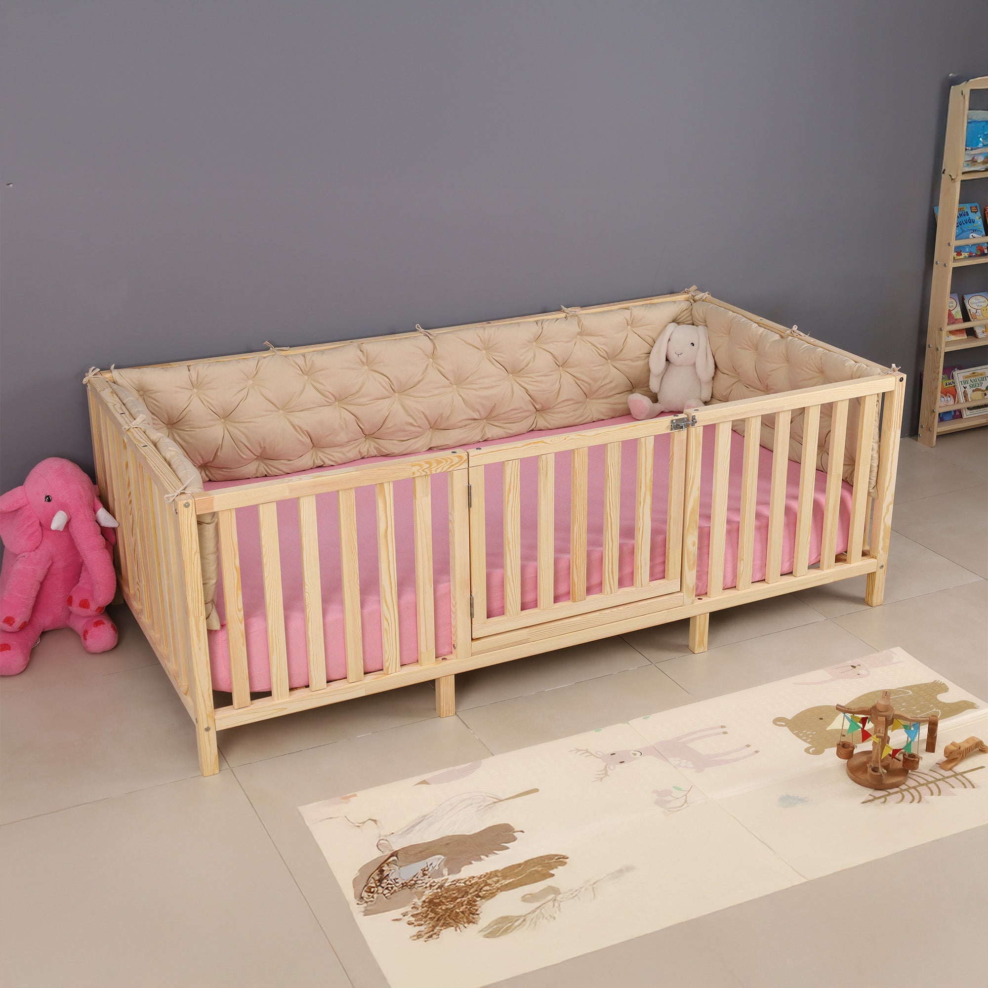 Lufi - Montessori Playpen Low Bed with Railings and Gate
